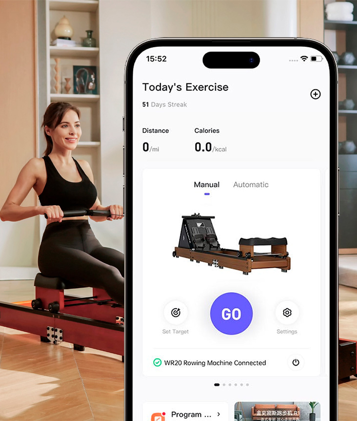 PPPN: PPN: Складной гребной тренажер KingSmith Rowing Machine Ultra (WR20)PCPN: Складной гребной тренажер KingSmith Rowing Machine Ultra (WR20) - Дуб