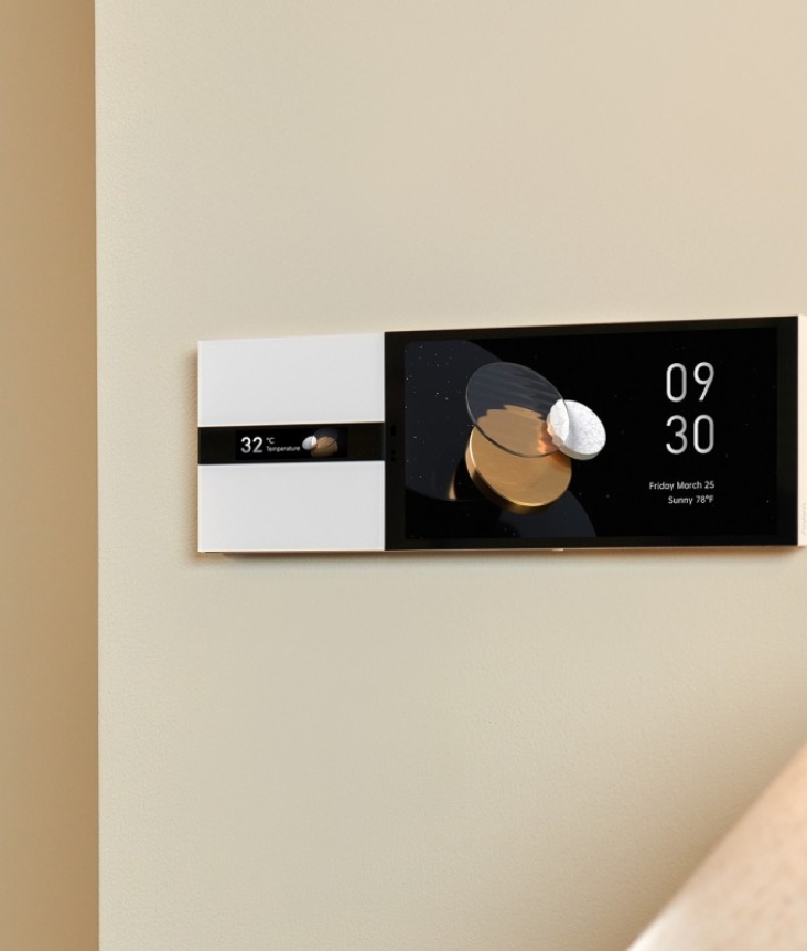 Сердце устройства — 2,08-дюймовый ЖК-экран с разрешением 454×180 пикселей . В отличие от многих других выключателей, здесь дисплей служит не просто украшением. На нем отображаются настраиваемые подписи и иконки для каждой кнопки . В приложении Aqara Home вы можете изменить текст, размер шрифта, цвет и даже выбрать значки, чтобы точно знать: красная кнопка с иконкой "солнце" выключает весь свет, а синяя с "тучкой" активирует сценарий "Кино" . В режиме ожидания экран может показывать время и текущую температуру в помещении .