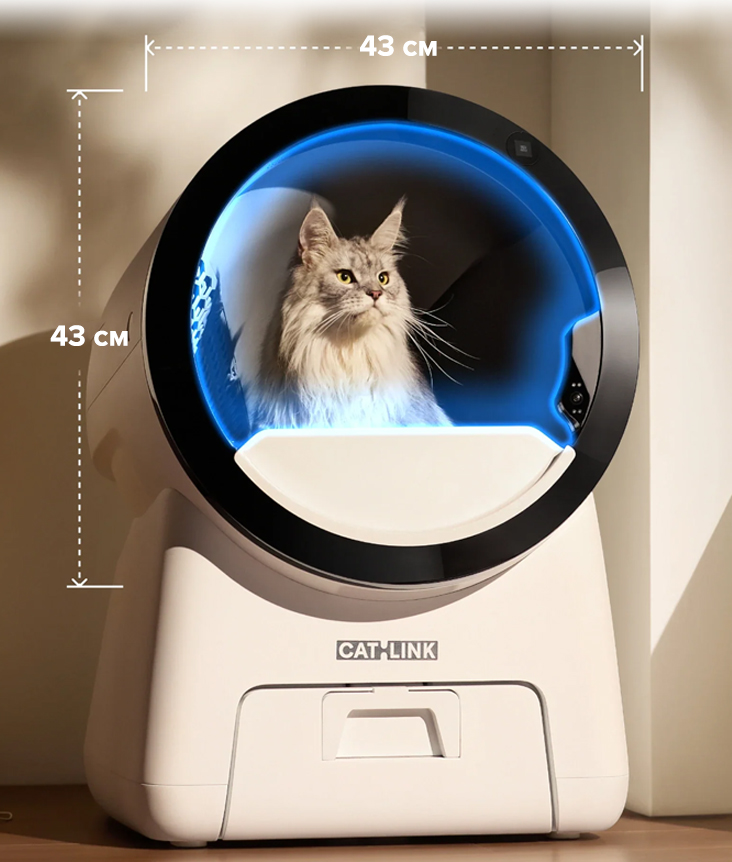 Вход шириной 43 см и просторное внутреннее пространство дают вашей кошке больше места для свободного передвижения, что делает автоматический лоток CatLink Scoop Robot Pro идеальным выбором для крупных кошек и домов, где проживает несколько кошек.