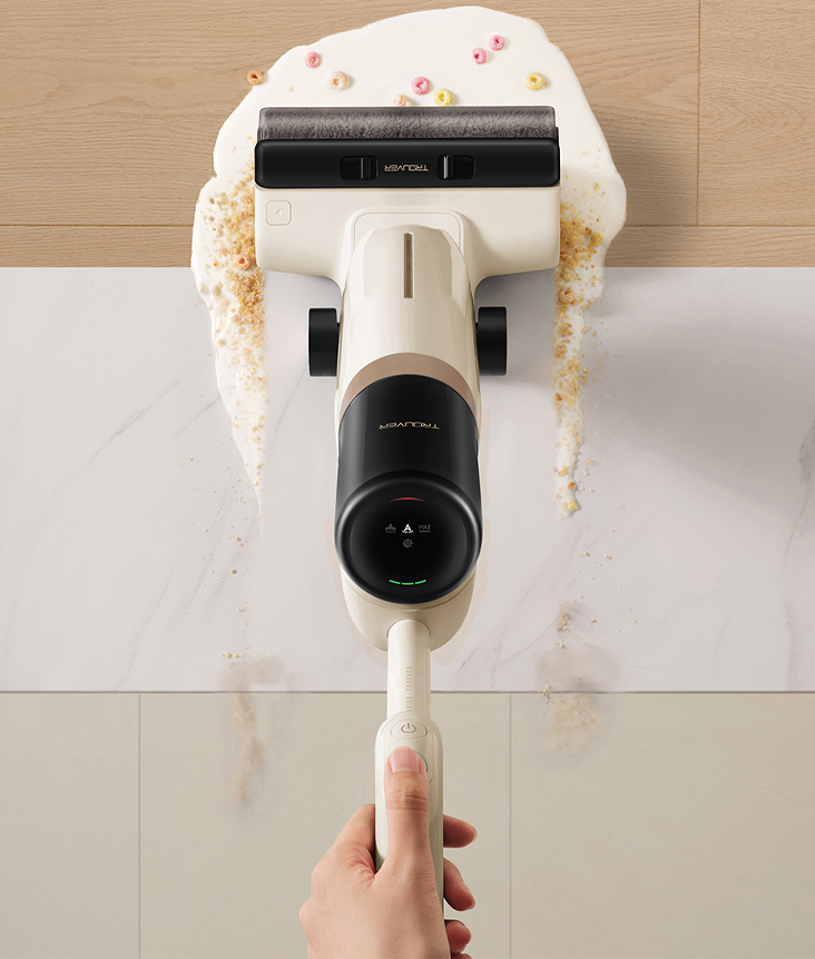 Благодаря всасыванию 18 000 Па Моющий пылесос Trouver K30 легко справляется с влажными и засохшими загрязнениями, удаляя их с первого прохода без необходимости повторной обработки.