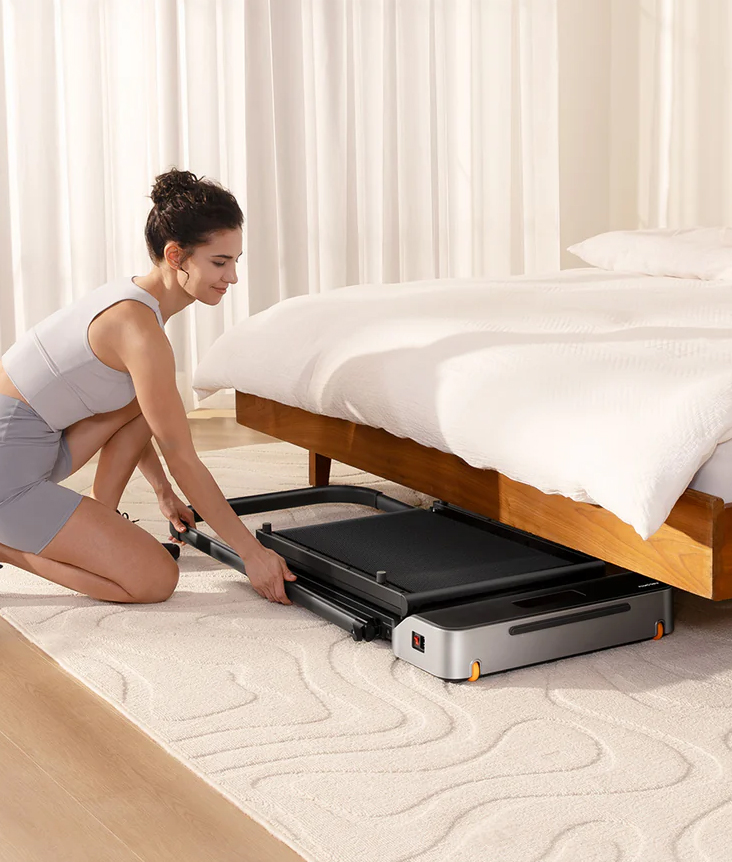 Благодаря ультратонкой платформе и фирменному механизму складывания на 180° беговую дорожку KingSmith WalkingPad Z1R легко хранить под кроватью, диваном или в шкафу. Она идеально подходит для квартир, домашних офисов и небольших помещений, позволяя экономить пространство без ущерба для производительности.