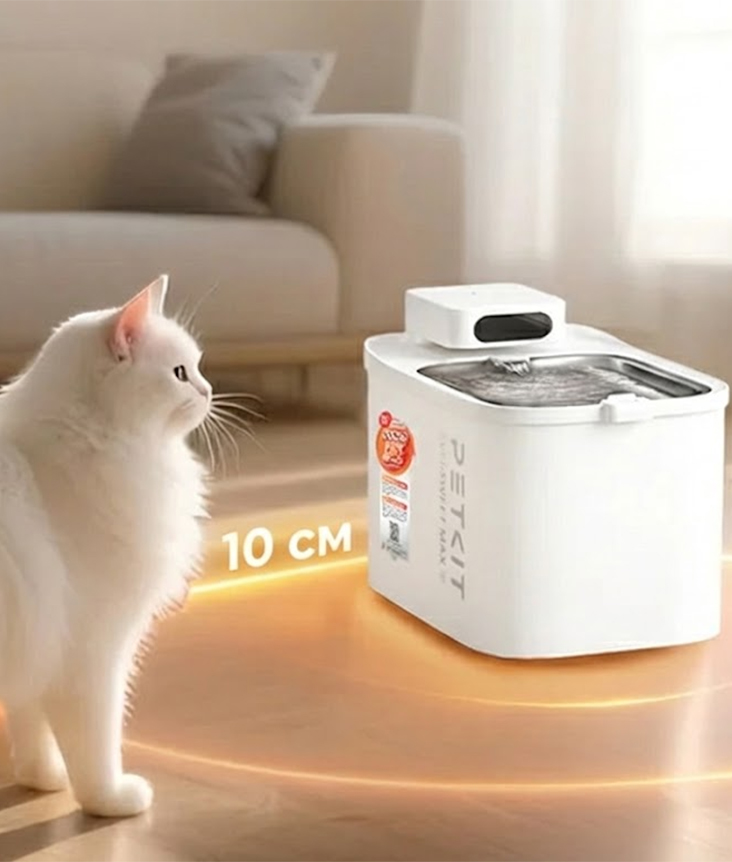 Показать полностьюОтличная автопоилка, может работать без зарядки около 60 дней зависит от настройки, имеется датчик который реагирует на движение и автопоилка начинает работать, водяной фильтр с UVC подсветкой осуществляет стерилизацию воды ультрафиолетом, приложение передаёт информацию о количестве и времени использования поилки через Bluetooth в приложение на телефоне, стильный дизайн, можно поставить куда угодно, вместимость 3 литра. Котикам всё понравилось, сразу же подошли чтобы попить свежей водички.