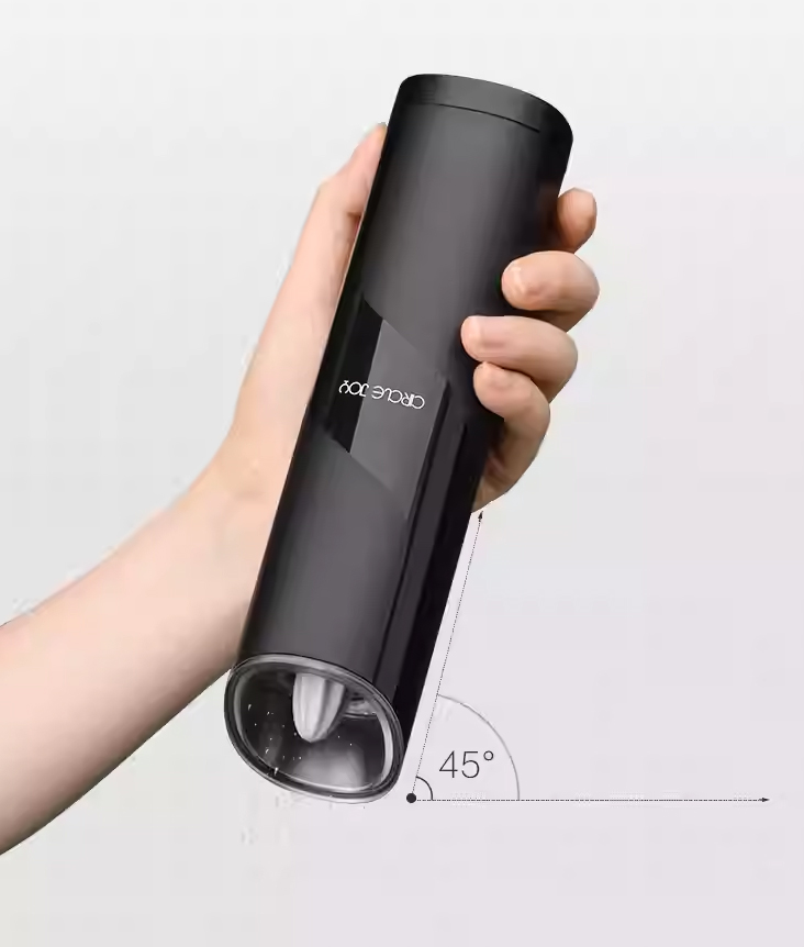 Теперь Вам не нужно прилагать усилия, чтобы получить душистые специи из мельницы - Circle Joy Gravity Grinder автоматически начнет помол при наклоне корпуса на 45°.