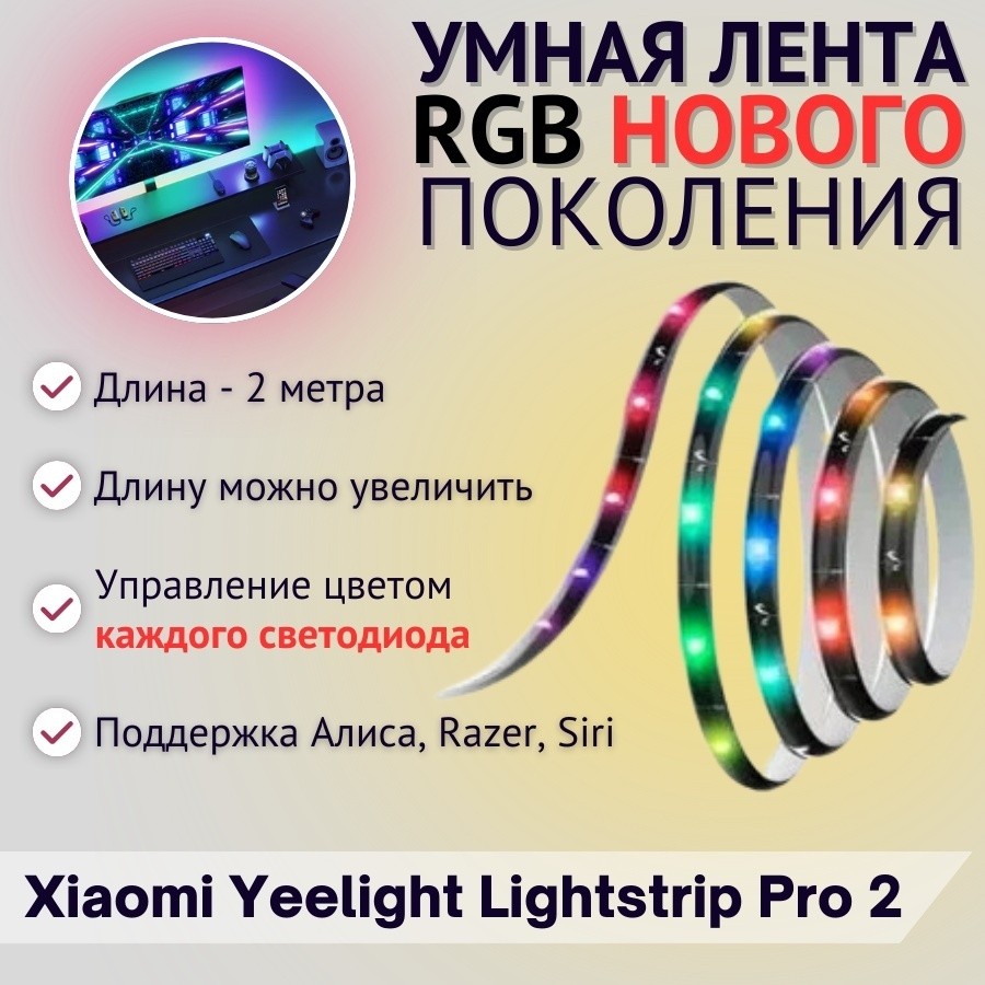 PPPN: Умная светодиодная лента Yeelight Lightstrip Pro 2PPN: Умная светодиодная лента Yeelight Lightstrip Pro 2 - Основная лента (2м)PCPN: Умная светодиодная лента Yeelight Lightstrip Pro 2 - Основная лента (2м) + 3 доп. лента (1м)