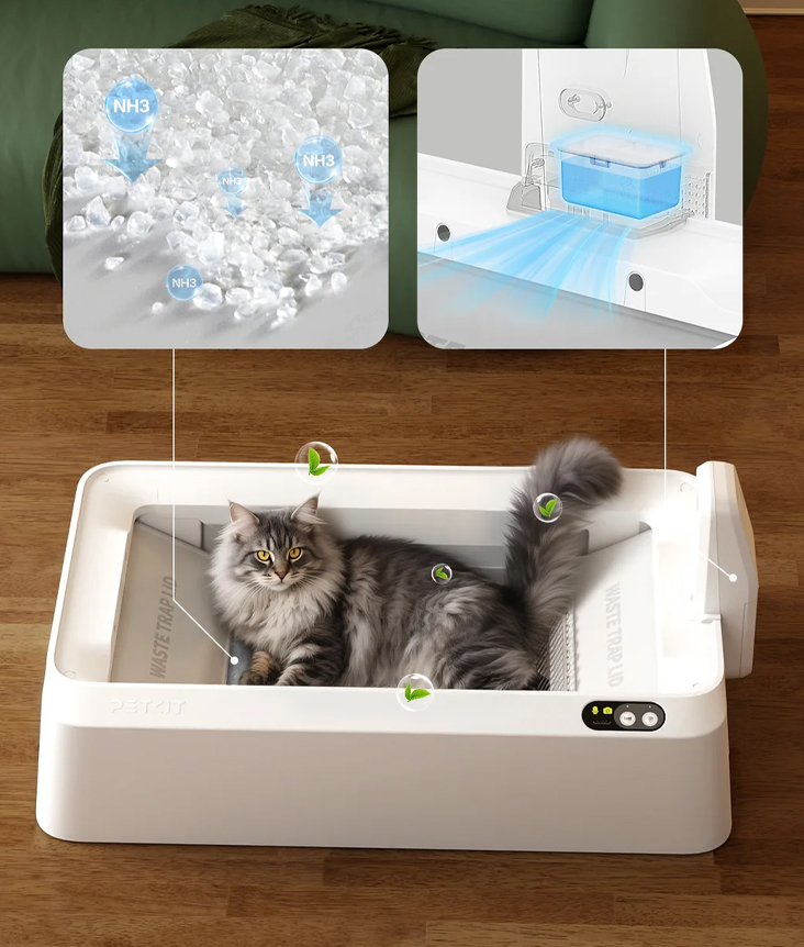 Кристаллический наполнитель, используемый в PetKit Crystal Duo, поглощает мочу и обезвоживает твердые отходы, обеспечивая превосходный контроль запахов. Двойной ловушка для отходов разработана с улучшенным контролем запахов. Устранитель запахов N60 в сочетании с интеллектуальным вентилятором удаляет до 96% аммиака, сохраняя ваш дом свежим и чистым.