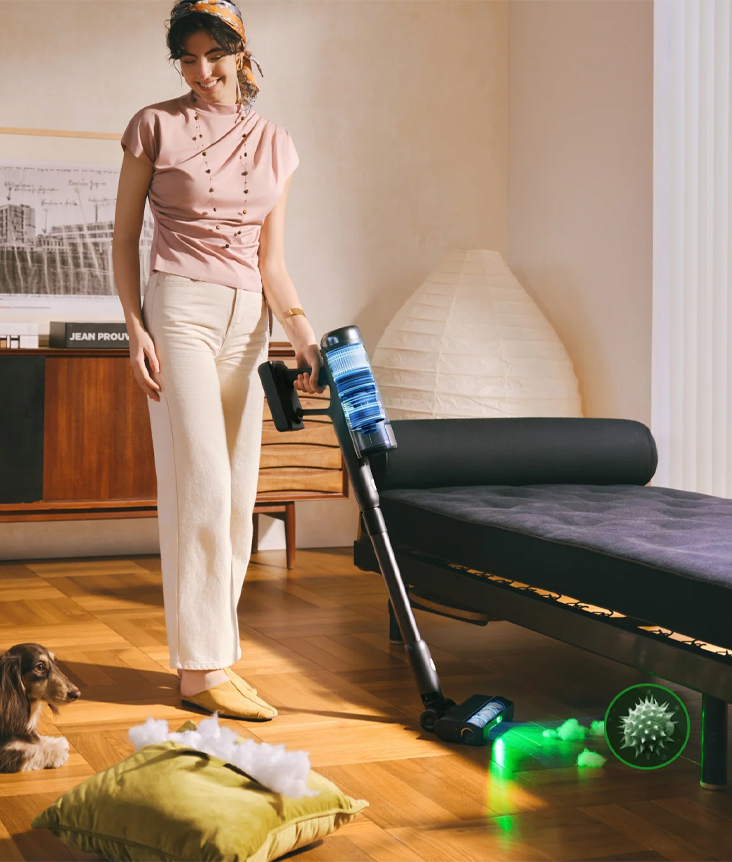 Яркая подсветка беспроводного пылесоса Roborock H60 Hub обнаруживает скрытые загрязнения, недоступные человеческому глазу, и значительно ускоряет процесс уборки. Это позволяет легко выявлять скопления пыли даже в самых затемненных участках помещения, обеспечивая тщательную очистку каждой зоны.