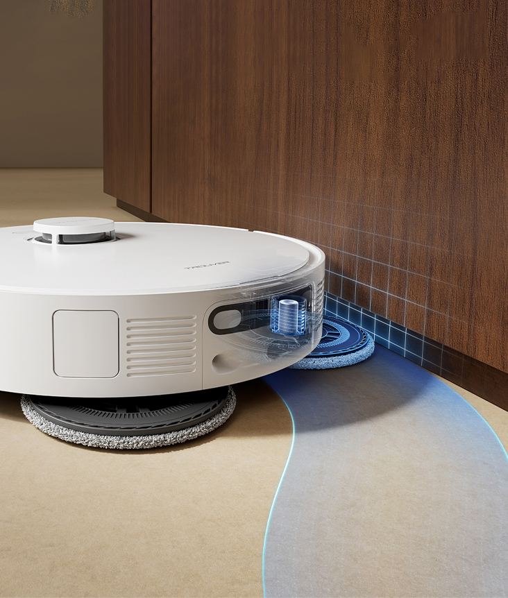 Выдвижная швабра робота-пылесоса Trouver E40 Ultra плотно прилегает к стенам, плинтусам и ножкам мебели. Это обеспечивает идеальную чистоту даже в самых труднодоступных местах, а результат уборки заметен уже после первого прохода.