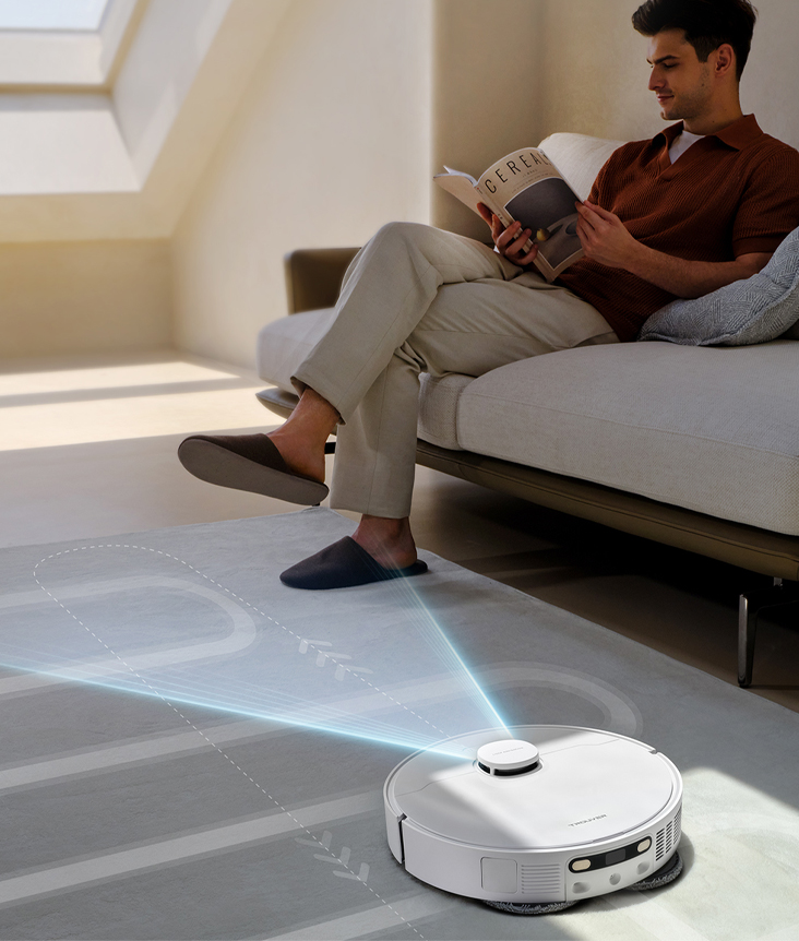 Робот-пылесос Trouver E40 Ultra строит точную карту помещения в реальном времени, позволяя прокладывать оптимальный маршрут и уверенно обходить даже мелкие препятствия. Каждая комната убирается равномерно, без хаотичных движений и необходимости постоянного контроля.