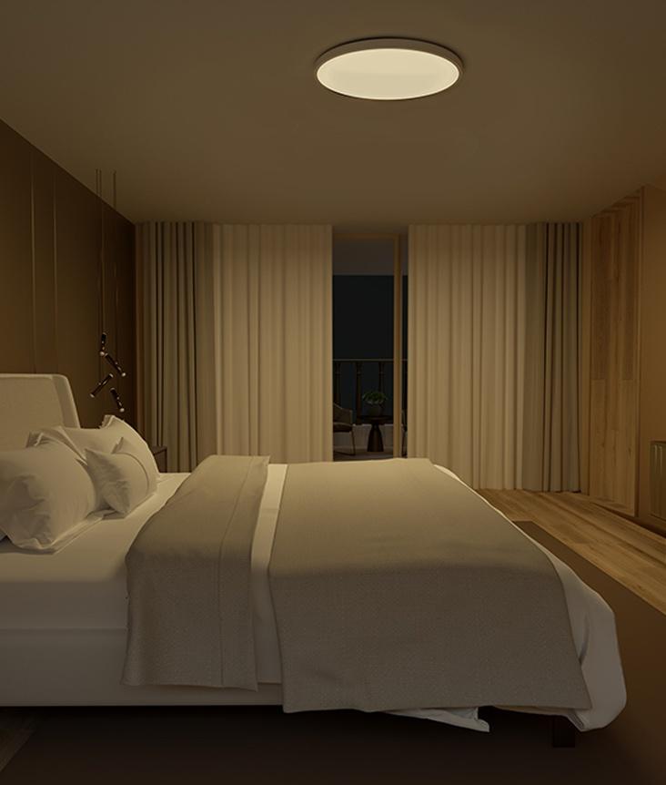 Потолочный светильник поддерживает 2 способа управления – с помощью мобильного приложения и внешних контроллеров. Во втором случае, пульт дистанционного управления Bluetooth входит в комплект с устройством, а переключатель Smart Dimmer доступен для покупки в качестве дополнительного аксессуара. Дистанционное управление позволяет регулировать цветовую температуру, включать/выключать устройство и изменять режимы работы в соответствии с личными предпочтениями даже вне дома. Все внешние аксессуары имеют компактные размеры и не займут много места в доме.