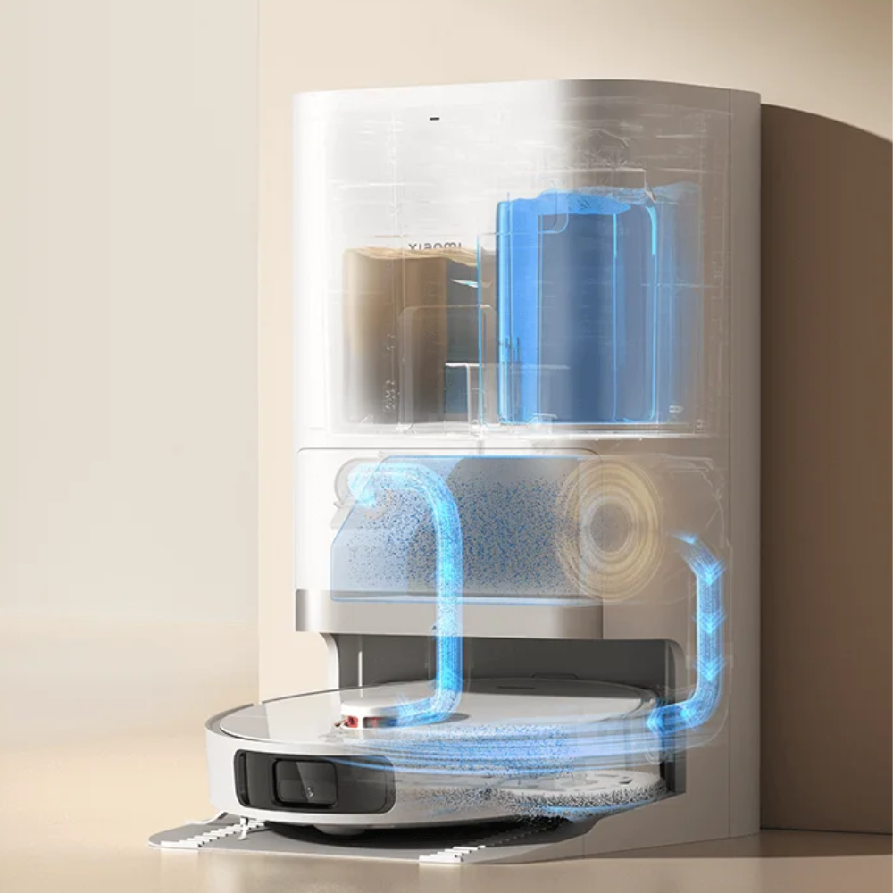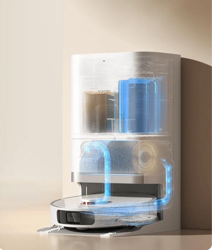 Два воздуховода с автоматическим опорожнением очистят пылесборник всего за 10 секунд. Мешка для сбора пыли большой емкости хватит на 75 дней без опустошения, чтобы вы могли оценить все преимущества уборки без пыли. Поддон для очистки можно отсоединить от базовой станции для упрощения обслуживания. Вы также можете использовать функцию самоочистки станции в приложении Xiaomi Home/Mi Home для автоматического слива воды из резервуара на базовой станции по мере выполнения уборки.